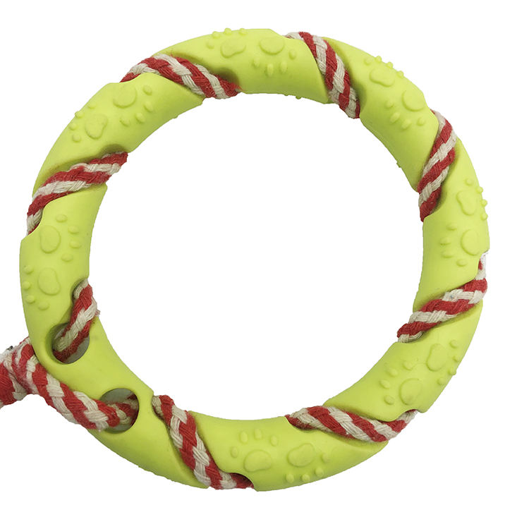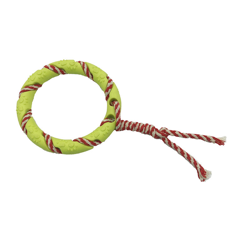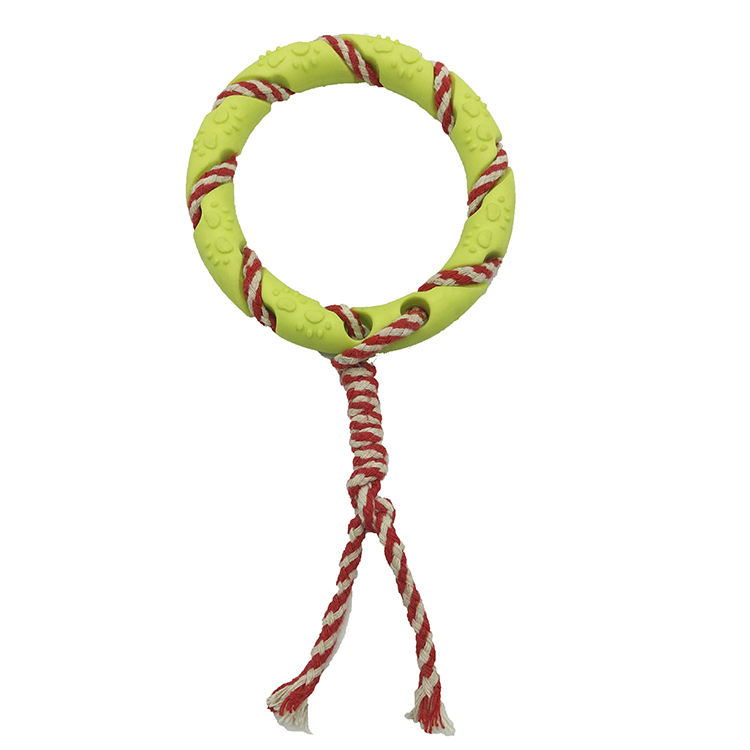 Outdoor Training Dog Toy Natural Rubber Ring Pet Interactive Chew Toys with Cotton Rope for Small Dogs